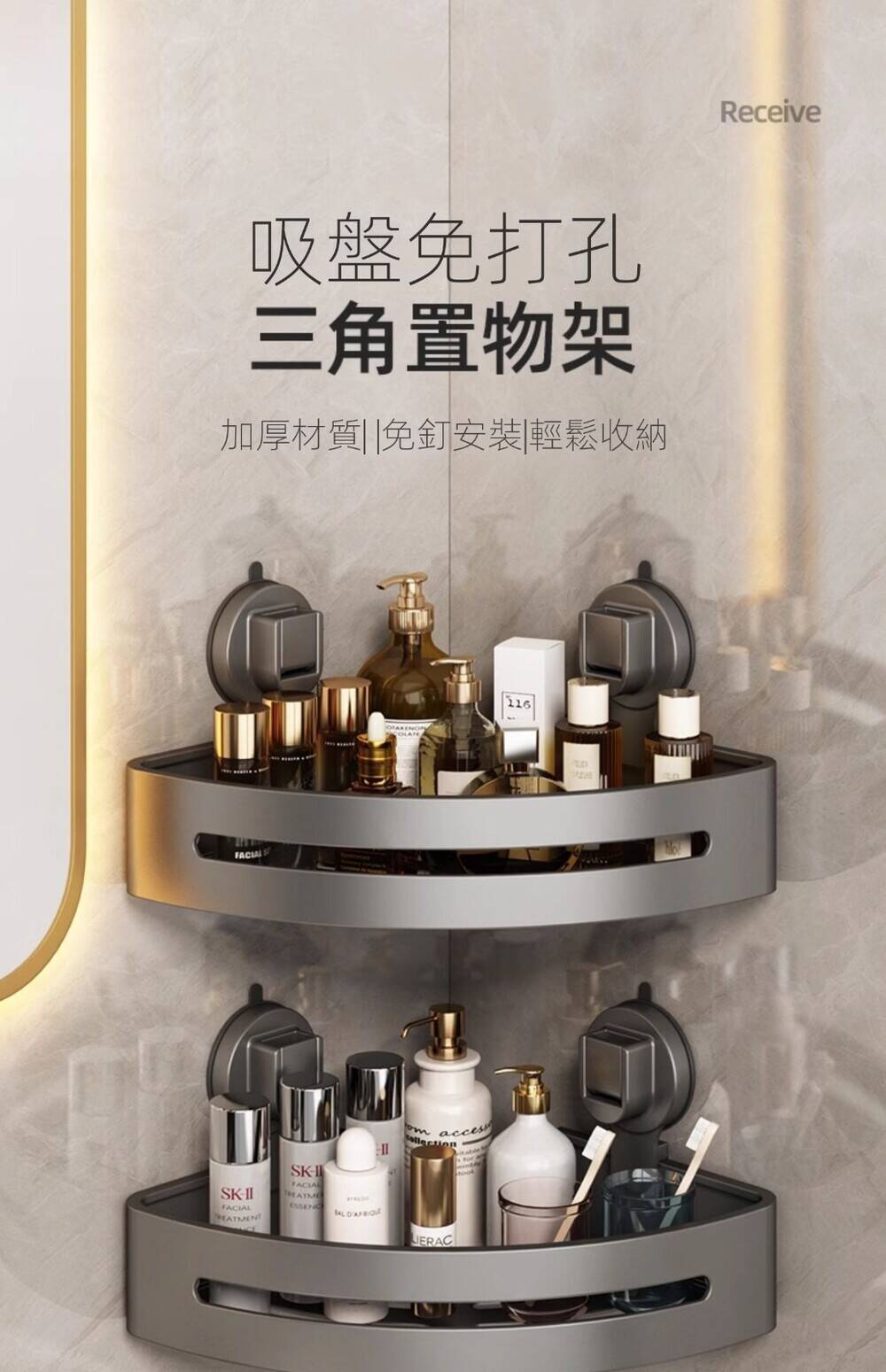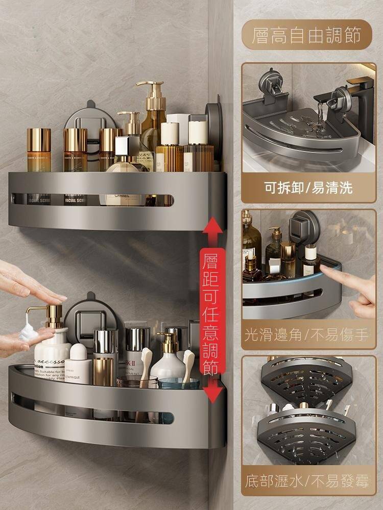 15分鐘前自帶吸盤,可隨時移動重復使用的置物架 免打孔廚房浴室衛生間三角置物架多用途壁掛收納架毛巾架 - 【超夯下殺】買一送二,共三入組 NT$998