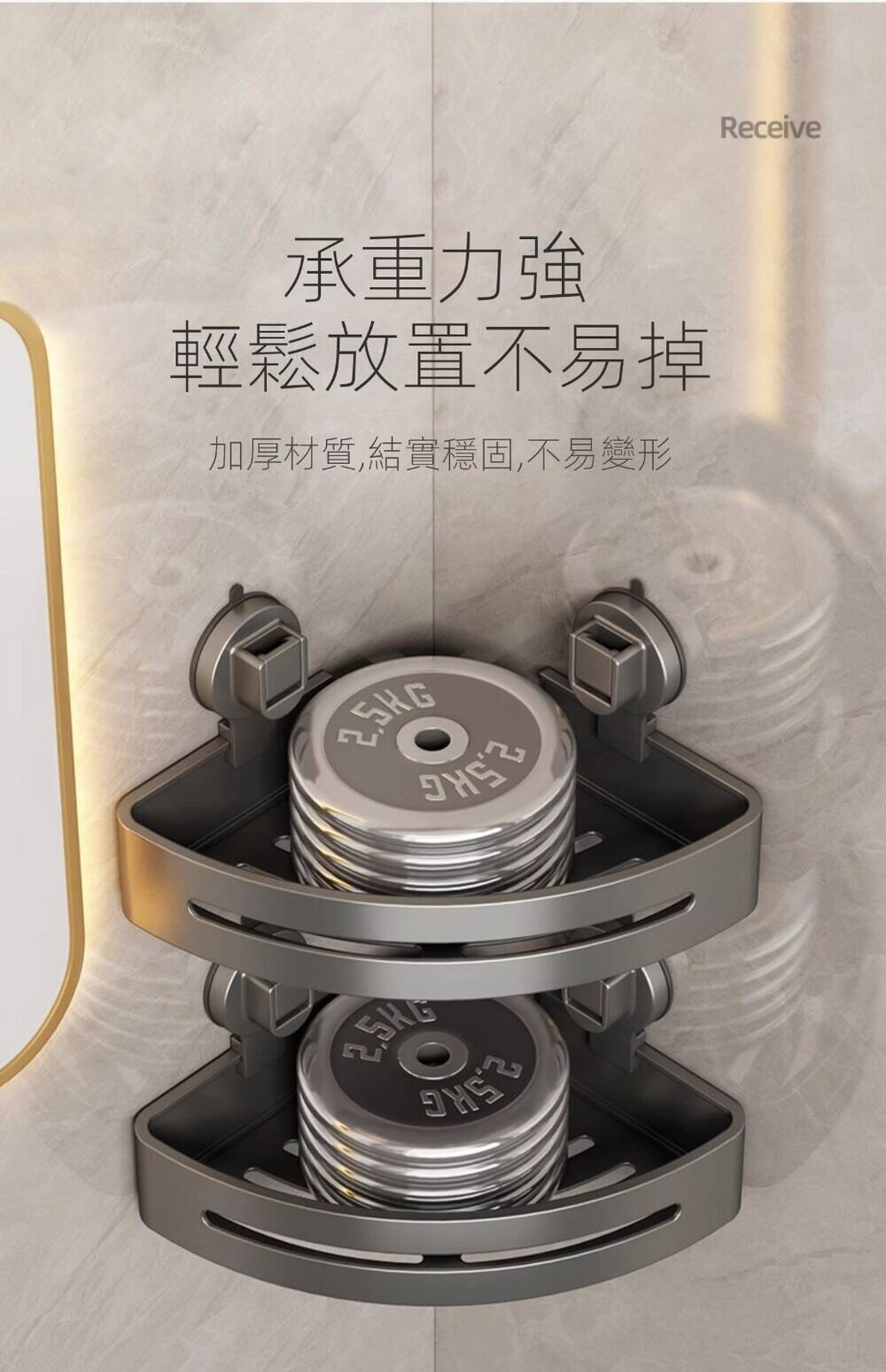20分鐘前自帶吸盤,可隨時移動重復使用的置物架 免打孔廚房浴室衛生間三角置物架多用途壁掛收納架毛巾架 - 【超夯下殺】買一送二,共三入組 NT$998
